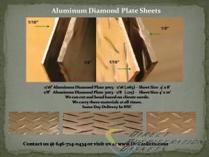 3003-H22 Aluminum Diamond Plate - The brilliant shine of Aluminum Diamond Plate adds sparkle, along with durability. AKA: Aluminum Diamond Plate, Aluminum Tread Plate, Tread Bright, Aluminum Floor Plate, this highly reflective, economical product is widely used in decorative, cosmetic and architectural applications. Having good forming, drilling and welding ability, Aluminum Diamond Plate is easy to fabricate and its raised diamond lug pattern provides good slip resistance. Non-magnetic, Tensile = 17,000, Yield = 12,000 (+/-)